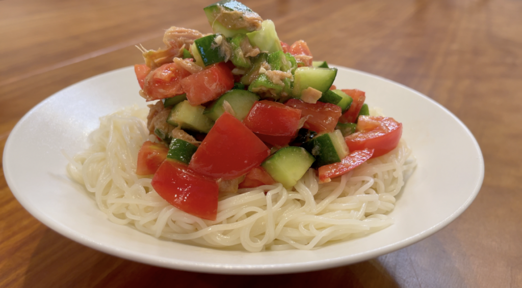 野菜とそうめんを混ぜながら召し上がってください。