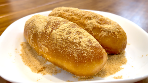 きなこ揚げパンです。きなこと砂糖で和風の味付けです。