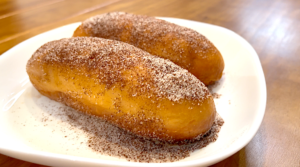 パンが揚げたての熱いうちにパウダーをかけてくださいね!